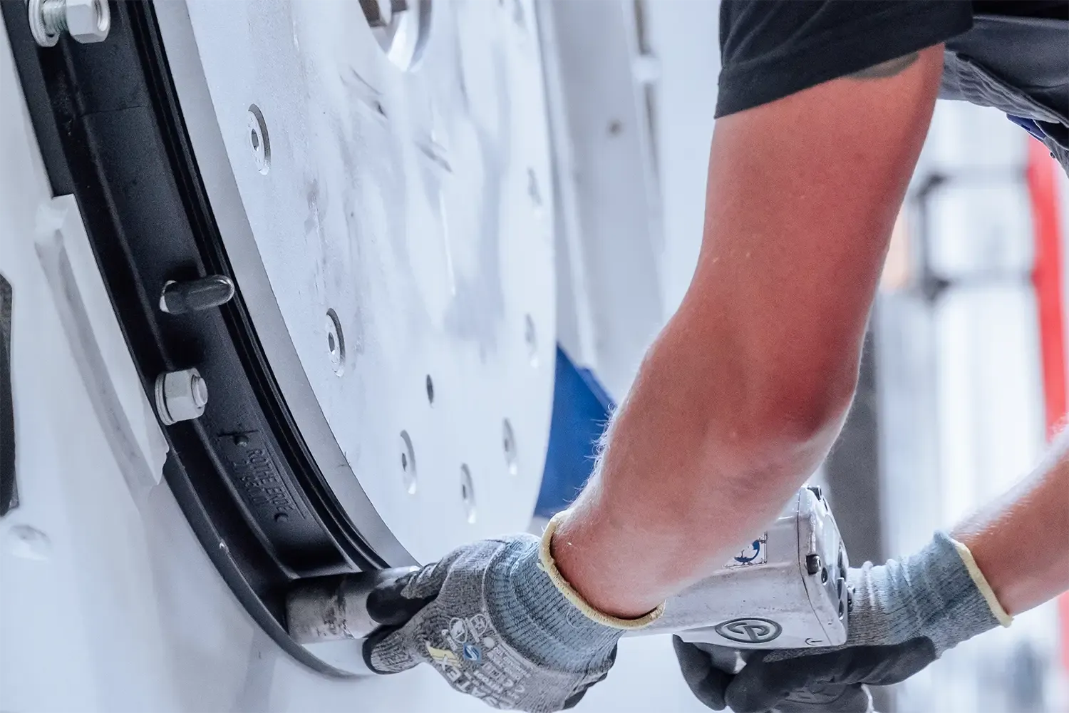 Mes mentors sont Arno et Paul, qui ont tous deux apporté une énorme contribution à mon évolution. L’une des choses les plus importantes que j’ai apprises d’eux, c’est que lorsqu’un problème se trouve devant vous, vous devez faire un pas en arrière, élargir votre perspective, voir l’ensemble du problème et le reconsidérer à partir de là. Remy, un patron exceptionnel, a une énorme connaissance générale et trouve toujours une solution. Je suis chez Faymonville depuis dix ans maintenant et travaille au service de dépannage à Bütgenbach depuissept ans. Dans ma fonction, il faut être très flexible et faire preuve d’un engagement total. On doit pouvoir compter sur moi. Dès que je reçois un appel du service clientèle, je me retrouve en déplacement, et la question ne se pose pas de savoir si je conduis ou non - je conduis. La connaissance du produit et l’intérêt pour le produit sont essentiels, et cela implique égalementde suivre des formations continues. Vous apprenez beaucoup des autres, ce qui vous aide à trouver des solutions. Et puis, c’est génial de rencontrer autant de personnes différentes. En fait, je voulais faire un tour du monde déjà à l’âge de 25 ans et je suis heureux de pouvoir maintenant intégrer ce rêve à mon travail.